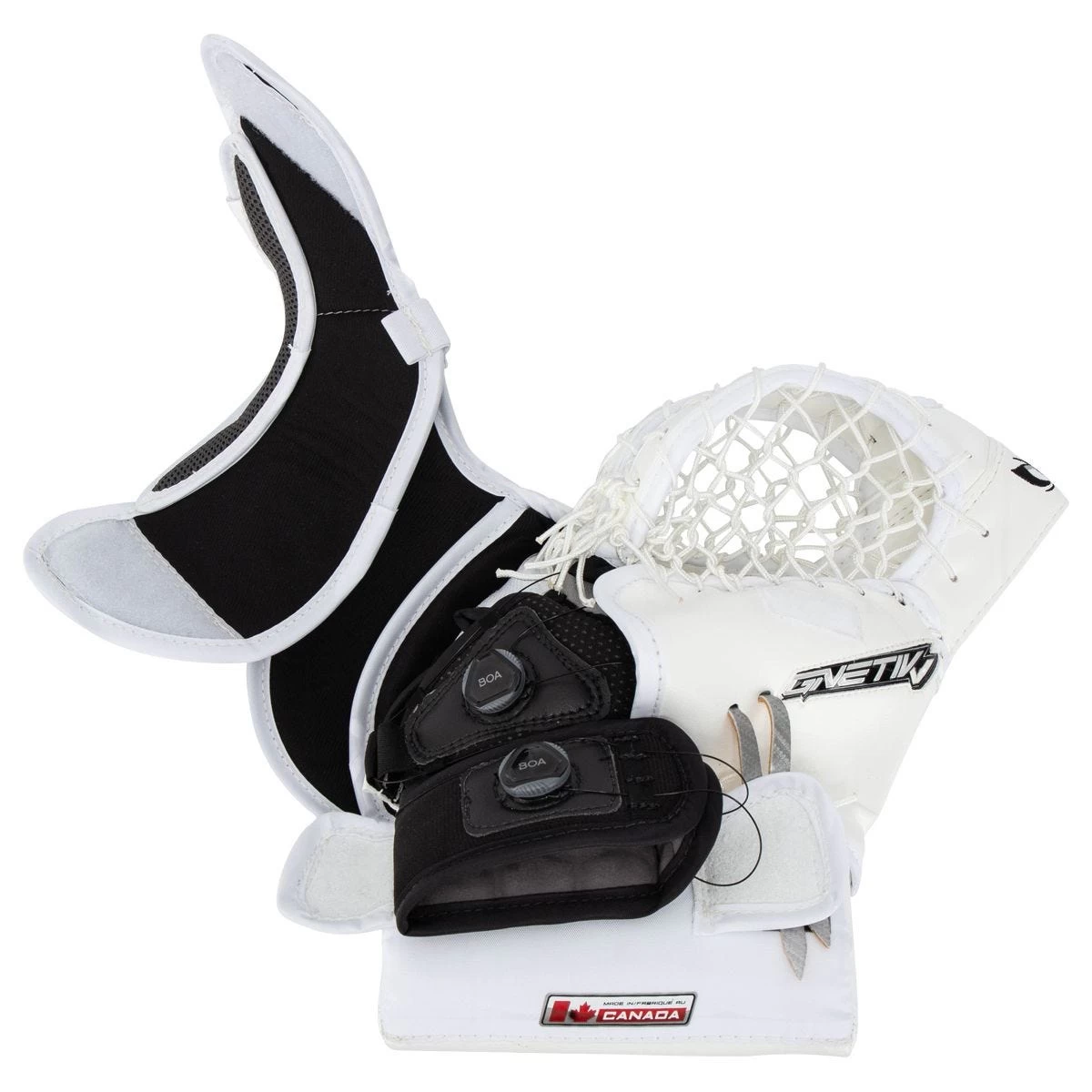 To maximize the grip and hold that BOA dials have on the goaltenders hand, the G-Netik V features Hex-Air SBA lined technology in the wrist to provide maximum mobility. An Airknit cushioned interior cuff provides comfort across the back of the wrist, while an elastic thumb strap offers a secure fit without hindering the closure of the glove.