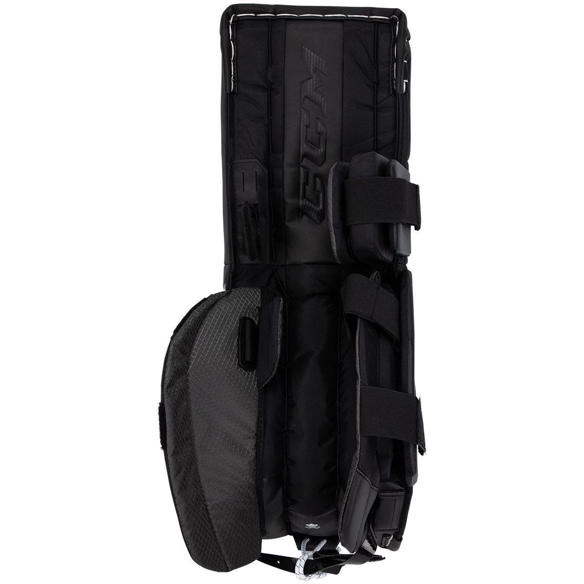 Flipping around to the inner edge, CCM has raised the inside edge with a Dual Density molded construction to create a better seal with the ice for more efficient cross-crease movements. Further back to the leg channel, an all new leg channel design adds more durability and design option through the middle of the pad. Returning for the strapping is CCM’s calf elastic strap that promotes a responsive connection between the goaltender and their pad that can be adjusted quickly. This strap sits across the back of the leg than connects via Velcro on the outside calf wrap.