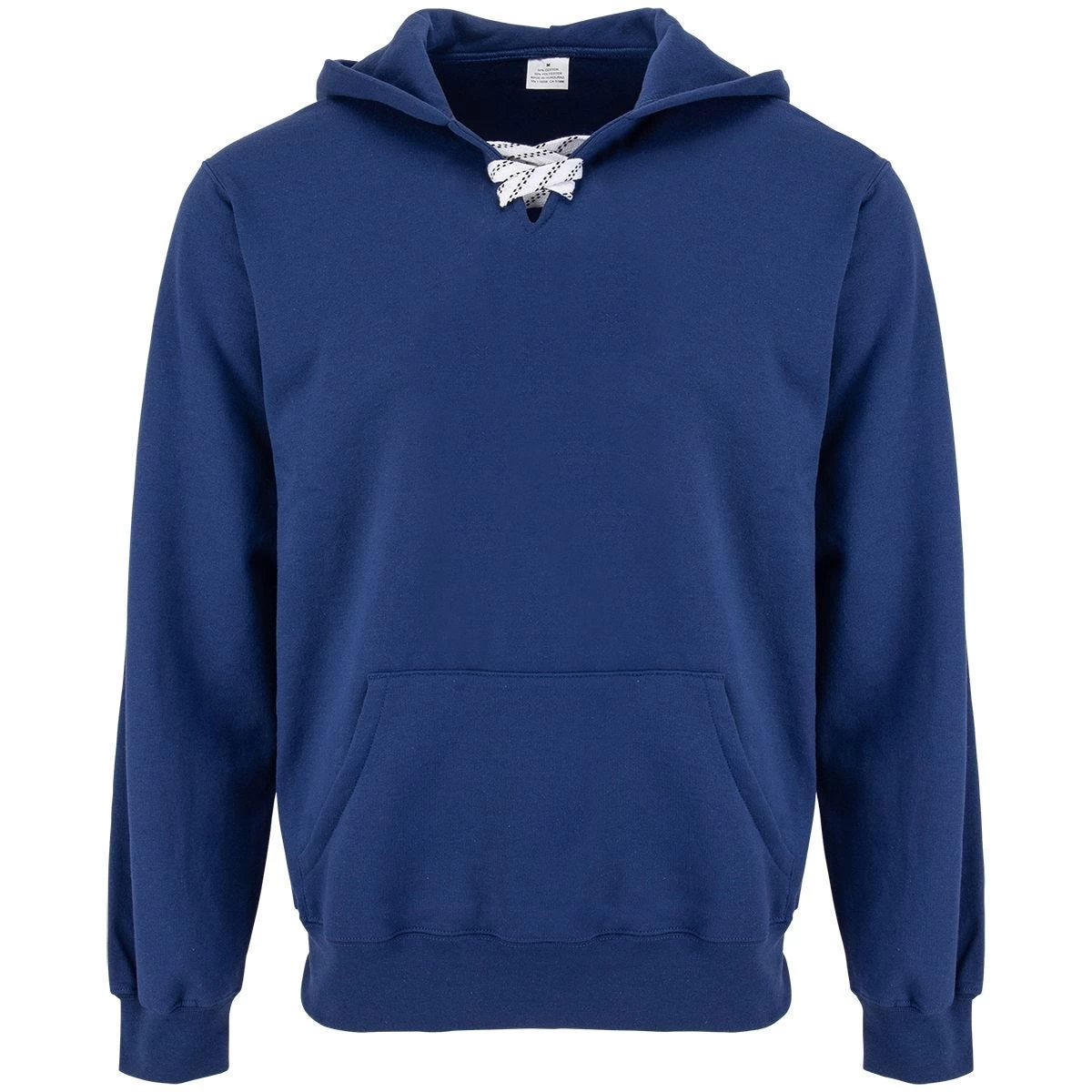 - Features a hockey jersey inspired neckline with skate lace draw cords that have a unique look, along with adjustability