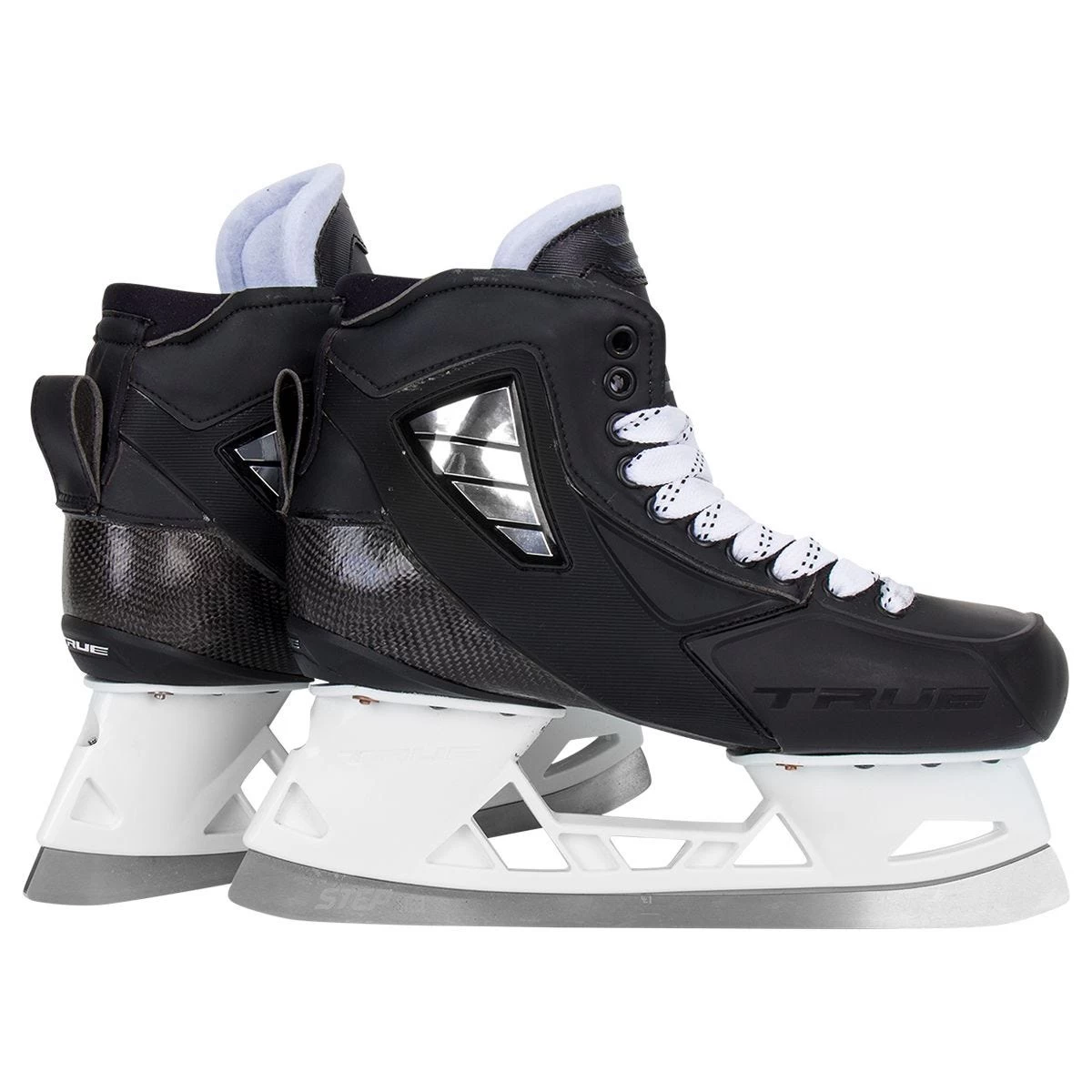 Starting with the outside of the skate, these True Stock Two-Piece Pro Senior Goalie Skates were designed with a patented carbon fiber, monocoque design which provides more direct power transfer and unmatched control while in stride or in tight turns. Coupling this powerful design is True’s Toe Cap which is dramatically reinforced for ultimate comfort and protection against pucks.