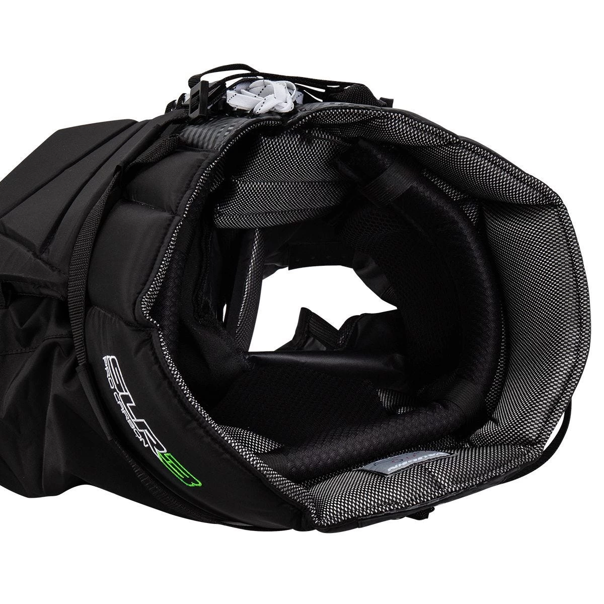 The lower portion of the SLR3 Pro Carbon features a wide 11 inch thigh guard profile for increased net coverage and large HD foam five-hole blocks. Double layered side groin pads and padding over inner thigh seams provide increased flexibility and protection coverage.