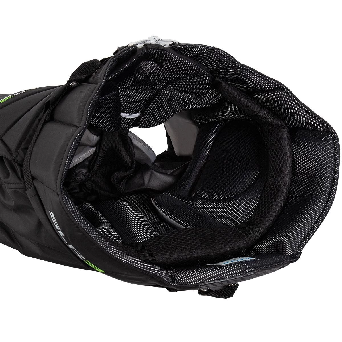 The lower portion of the SLR3 Pro features a wide 11 inch thigh guard profile for increased net coverage and large HD foam five-hole blocks. Double layered side groin pads and padding over inner thigh seams provide increased flexibility and protection coverage.
